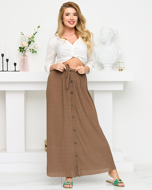 Női barna redős midi szoknya gombokkal - Lábbeli