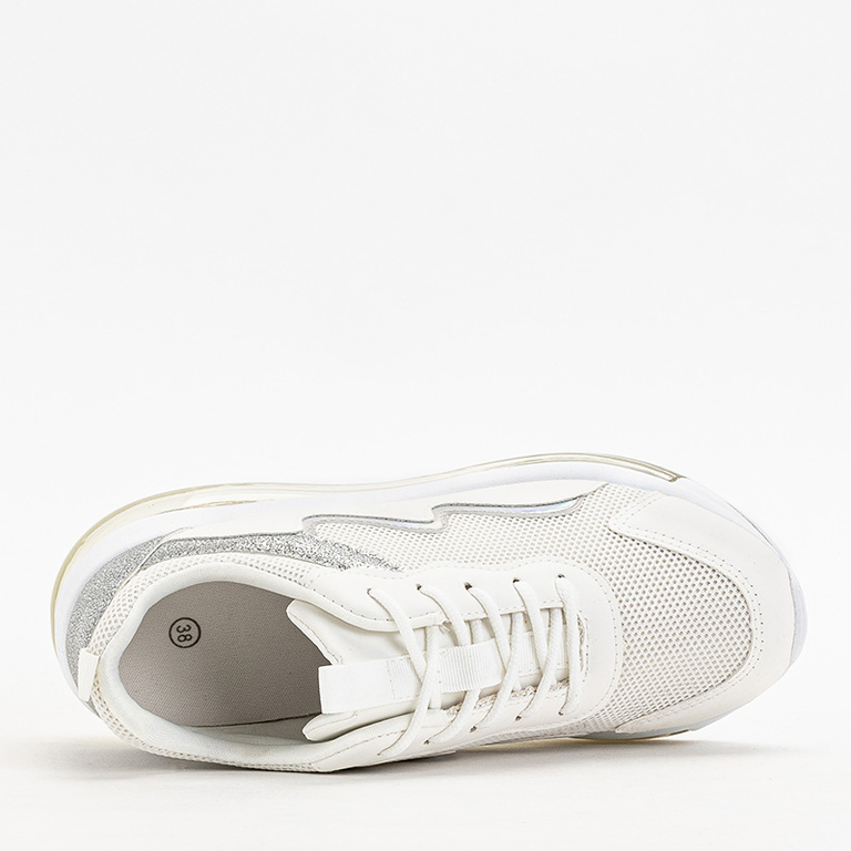 - Stílusos női sportcipő éksarkú, fűzős felsőrész háló és matt ökológiai bőr kombinációjából. Belül szövet betét. Megjegyzés: a termék anyagán karcolások találhatók.