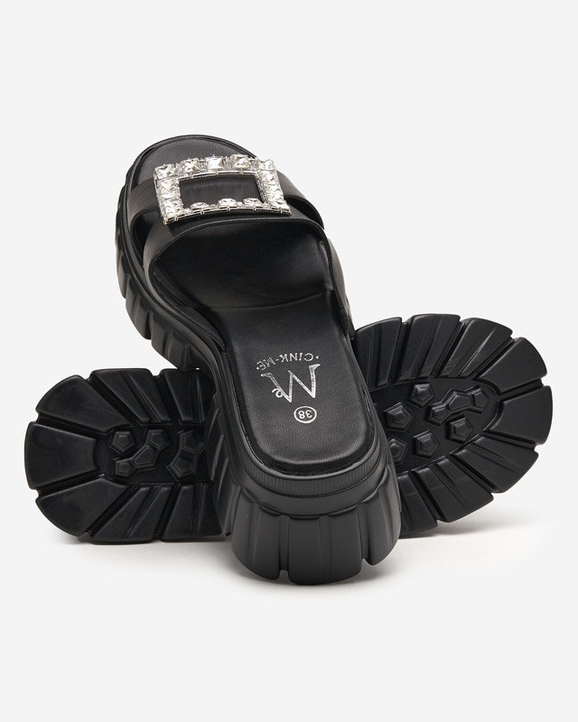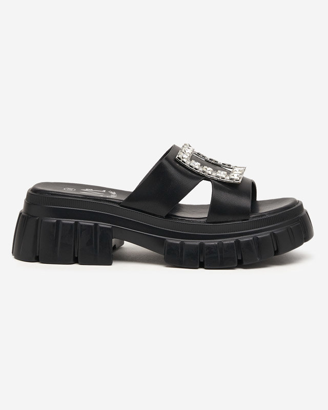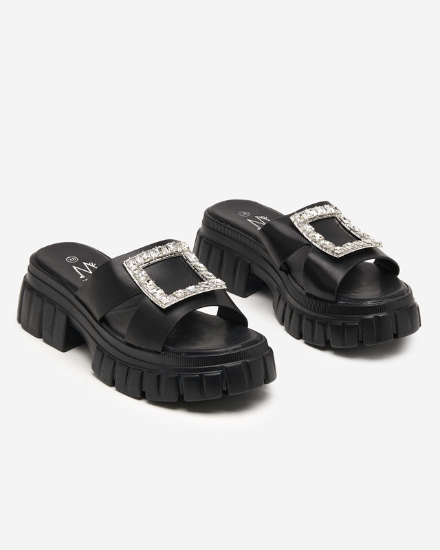 Fekete női papucs kristályokkal masszív talpon Vetasi - Lábbeli