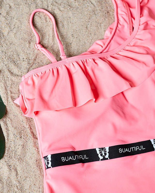 Női rózsaszín egyrészes fürdőruha, fodros - Fehérnemű