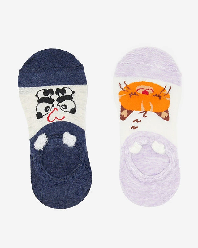 Női sötétkék és lila bokazokni állatmintás 2 / csomag - Fehérnemű