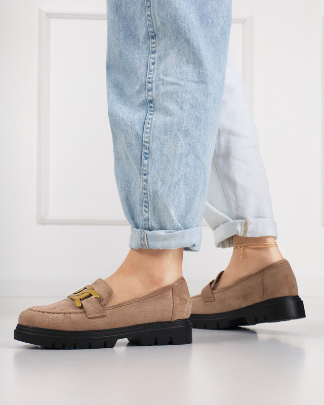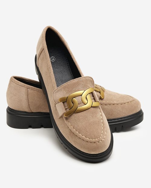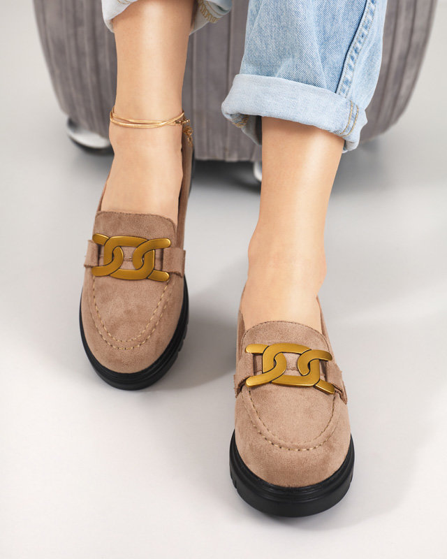 OUTLET Világosbarna női cipő arany díszítéssel Mubissa - Lábbeli