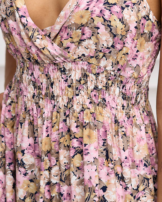 Rózsaszín és bézs színű női nyári ruha virágokkal - Ruházat