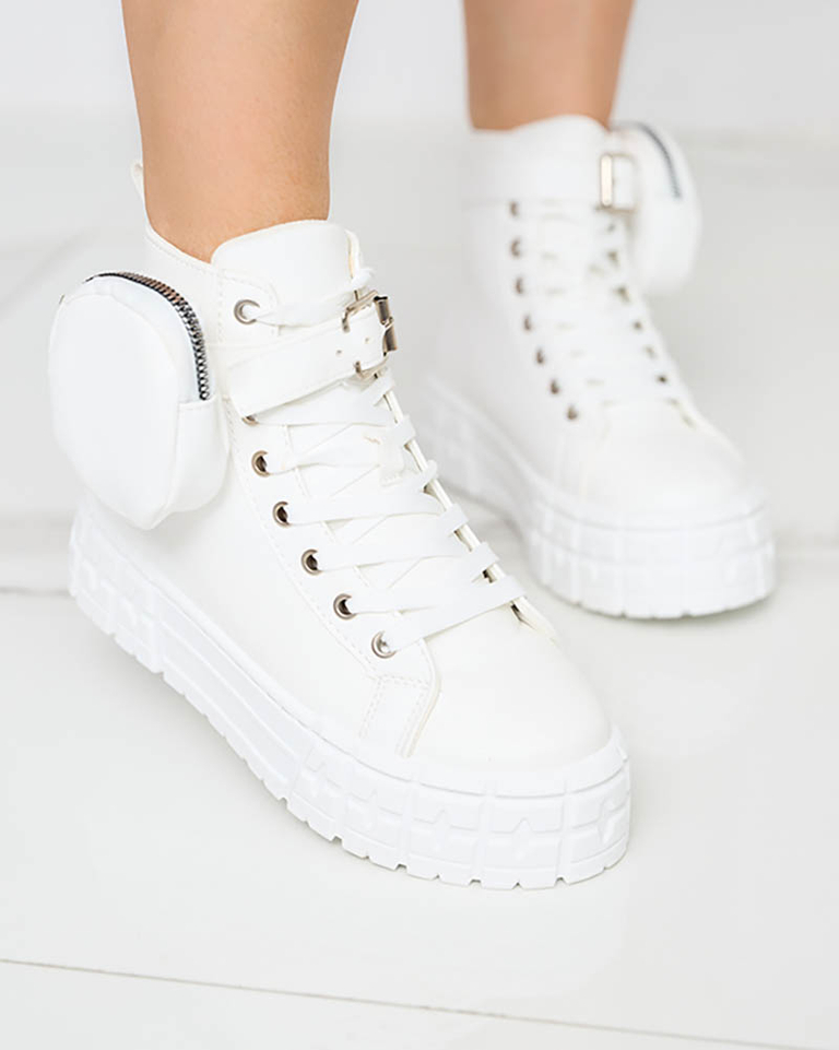 • Eredeti női magas platformos sportcipő. Fűzős felsőrész öko bőrből, középen szövet anyaggal bélelt. Kiegészítő tasak a bokán. Jó választás minden nőnek!