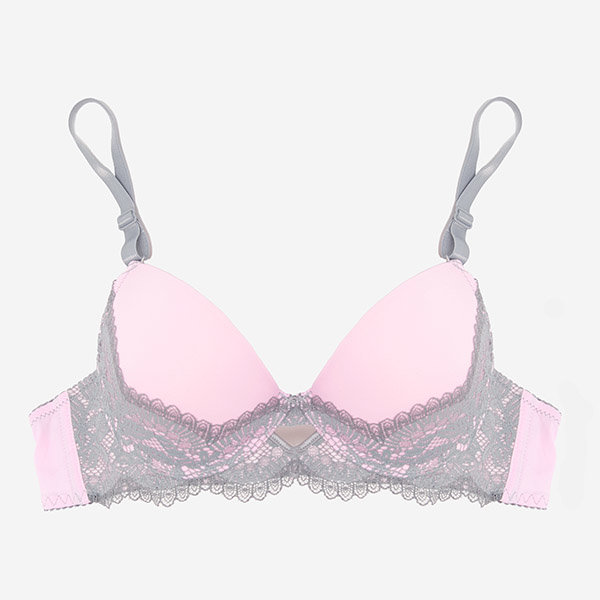 Szürke és rózsaszín női melltartó csipkével - Fehérnemű