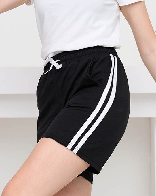 - Sportos és nagyon kényelmes csíkos rövidnadrág, csíkokkal díszítve. A modell széles elasztikus szalaggal és derékban megkötött húzózsinórral rendelkezik. Tökéletes az aktív időtöltéshez! MEGJEGYZÉS: mérési pontosság (+/-) 1 cm.