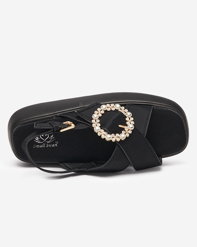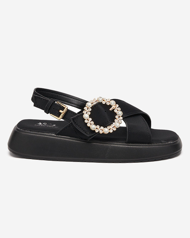 Fekete szövet női szandál lapos talpon cirkóniával Senire - Lábbeli