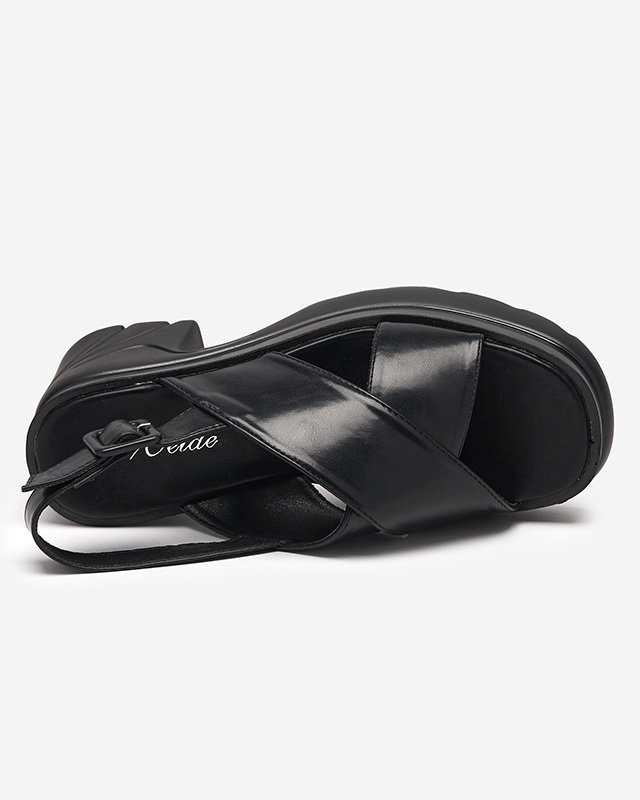 Fekete női szandál vastag oszlopon Feine - Lábbeli