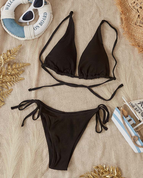 Fekete bordás női kétrészes fürdőruha - fehérnemű