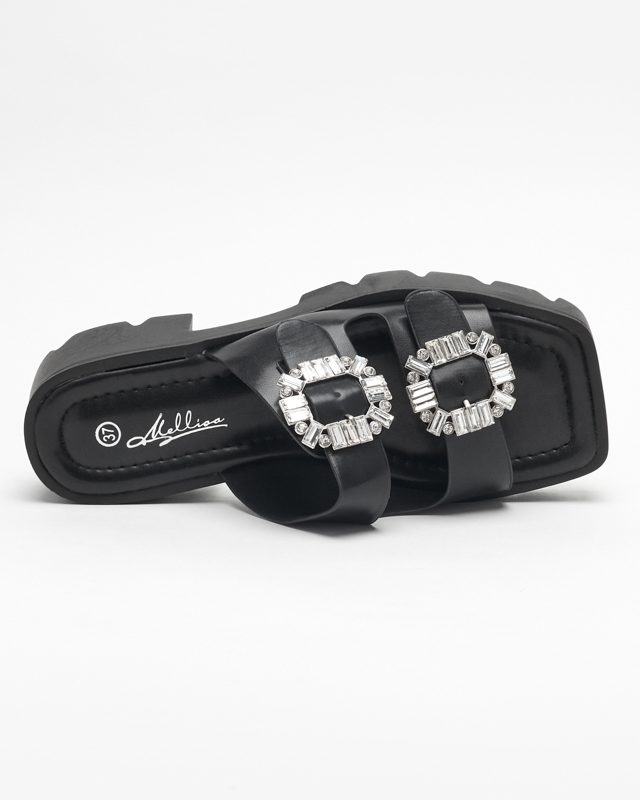 Fekete női papucs cirkon díszekkel Sadoh - Lábbeli