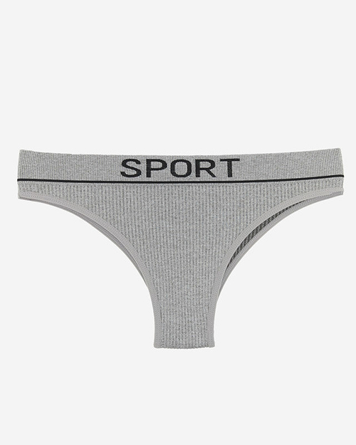 Szürke női bordás bugyi sportos feliratokkal - Fehérnemű