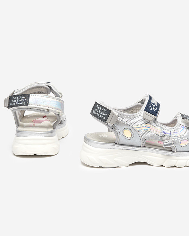 Ezüst gyerekszandál színes betétekkel Meniko - Lábbeli