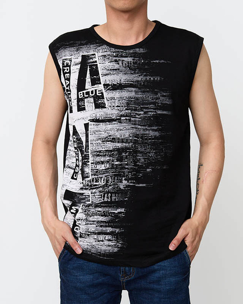 Fekete színű férfi ujjatlan nyomott póló - Ruházat