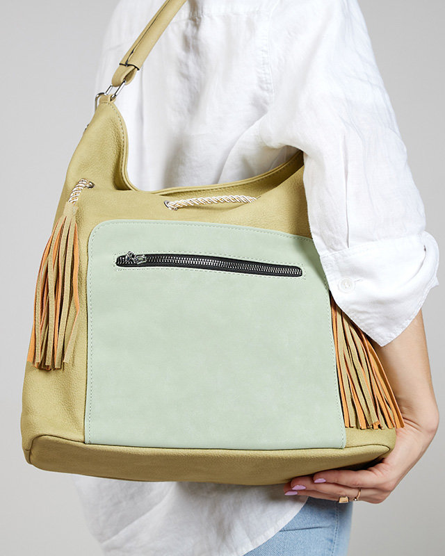 • Divatos, cipzárral zárható női bevásárlótáska, ekobőrből, díszítő zsinórral. A modell rendelkezik: - 1 rekesszel, - 2 slip zsebbel és 4 cipzáras zsebbel, - fogantyúval és levehető övvel, ami állítható.