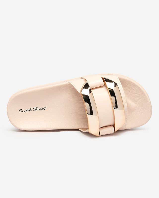 Női bézs színű papucs arany Serina díszítéssel - Lábbeli