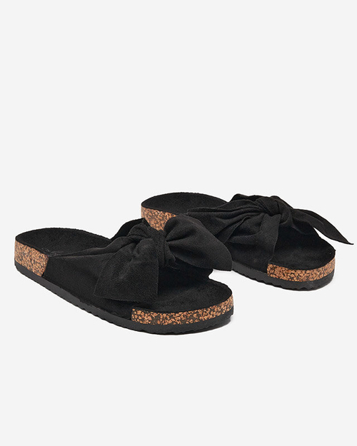 OUTLET Fekete női öko-velúr papucs masnival Xeria - Lábbeli