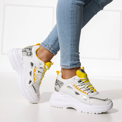 Női fehér tornacipő sárga elemekkel vastag Gisela talpon - Lábbeli