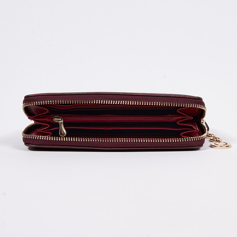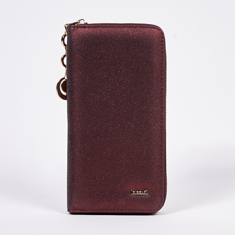 - Gyönyörű női pénztárca ökológiai bőrből, brokát felülettel, cipzárral rögzítve. A modell rendelkezik: - 2 rekesszel, köztük 1 cipzáras zsebbel az érmék számára, - 10 zsebbel a bankkártyák vagy egyéb dokumentumok számára.