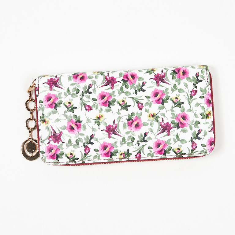 Nagy fehér női pénztárca rózsaszín virágmintával - Kiegészítők