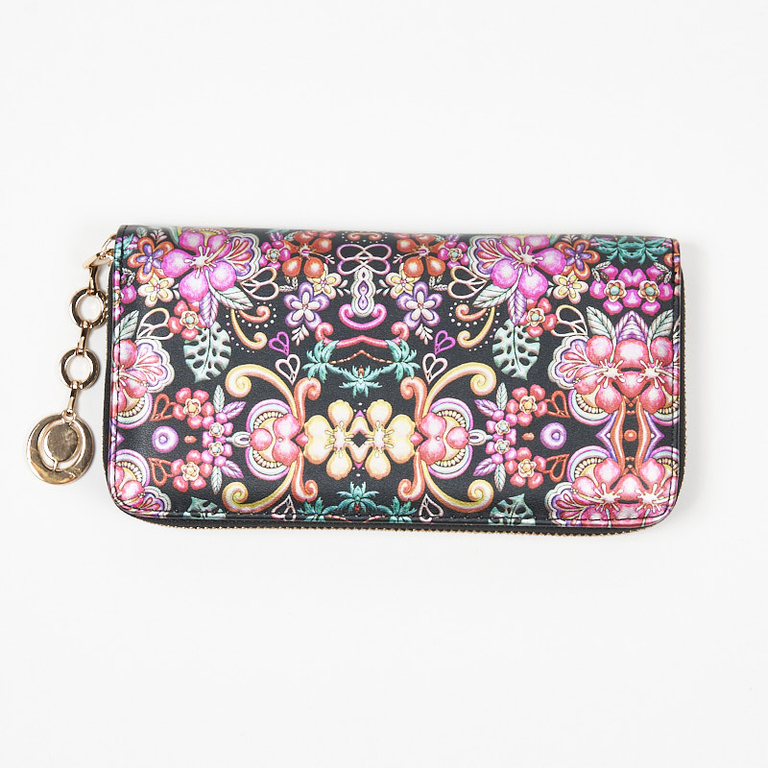 Virágmintás nagy fekete női pénztárca - Kiegészítők