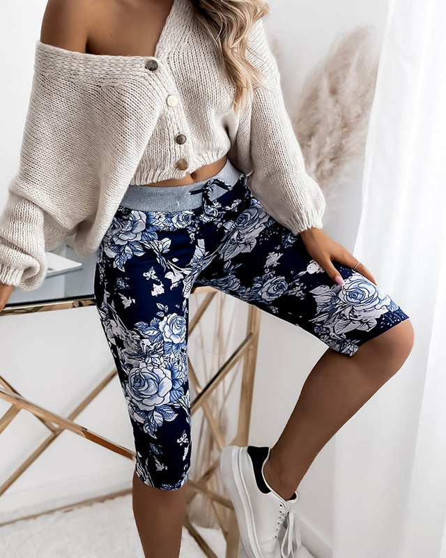 Virágos 3/4-es női rövidnadrág sötétkék és kék színben. Molett méretű ruházati cikkek