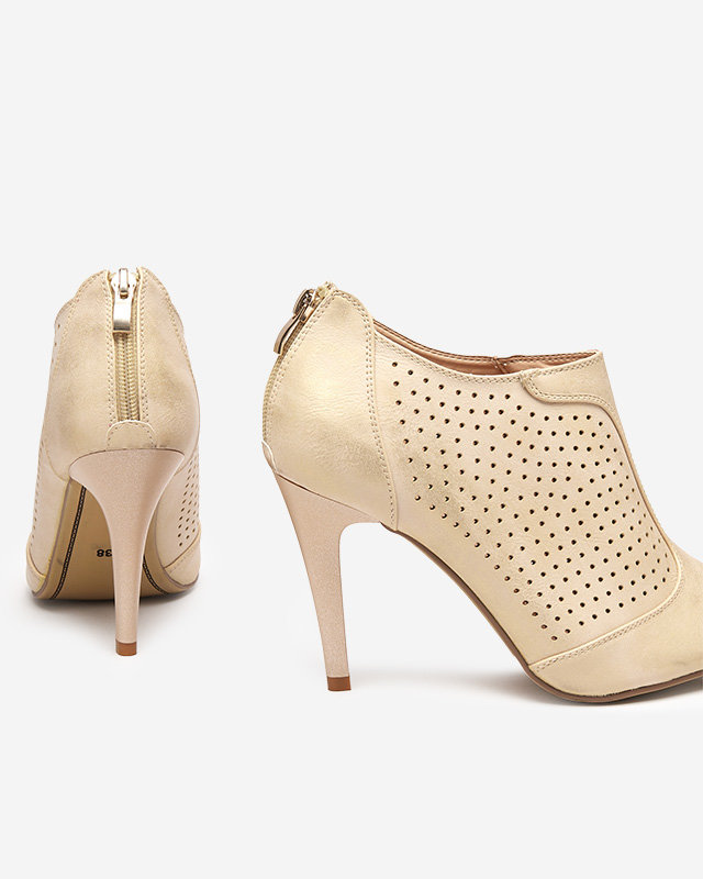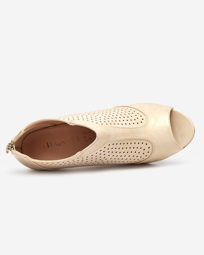 OUTLET Női bézs áttört szandál magas sarkon Somigo- Cipők