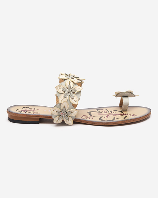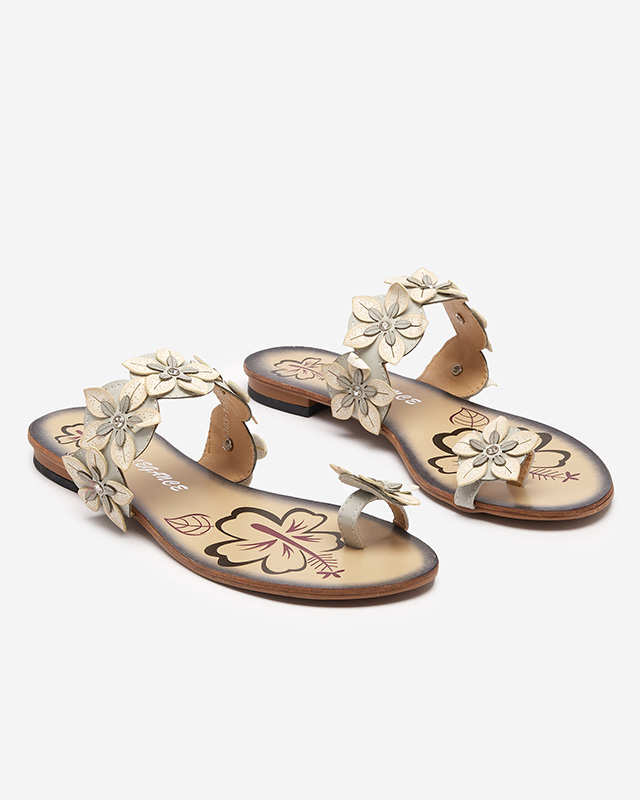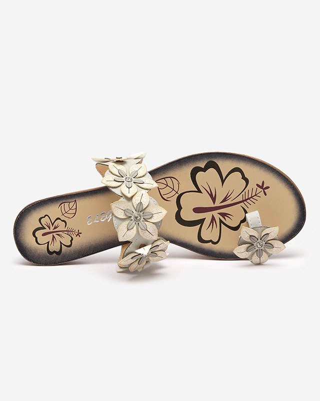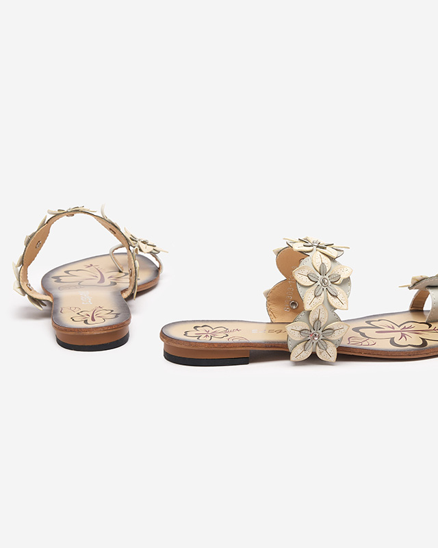 Bézs és szürke női virágos papucs Euqas- Footwear