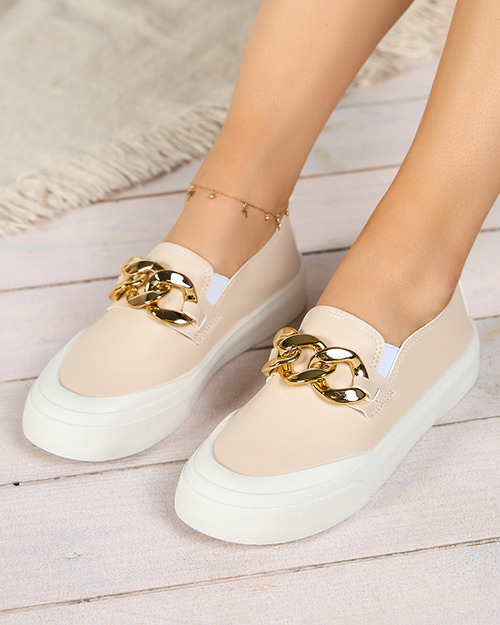 OUTLET Női bézs bebújós cipő vastagabb talppal Senula díszítéssel - Lábbeli