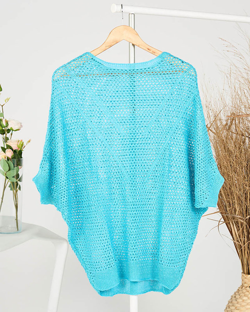 Átlátszó kék női pulóver leengedett vállú - Ruházat