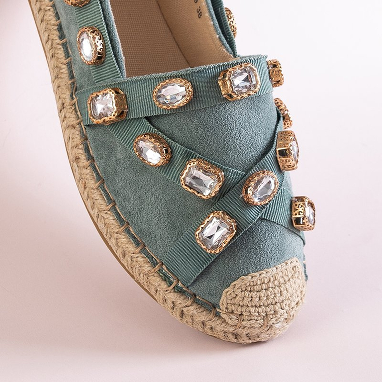 OUTLET Zöld női espadrillák Wamba kristályokkal - Cipők