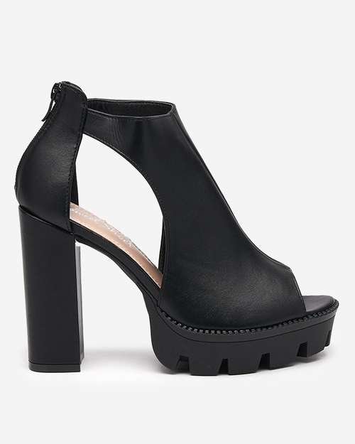- Ízléses női szandál ökológiai bőrből készült oszlopon. A modell hátul cipzárral van rögzítve. A kivágott felsőrész stílust ad! Megjegyzés: a termék anyaga törött.