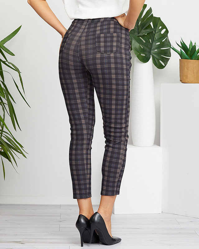 Fekete-kék női kockás tregging zsebes részletekkel - Ruházat