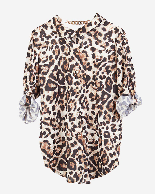 • Mintás nagyméretű női ing, hátul díszlánccal. A modell rendelkezik: - hosszú ujjú, rögzítési lehetőséggel, - gombos rögzítéssel, - 1 zsebbel, - eredeti és nagyon divatos mintával.MEGJEGYZÉS: Mérési pontosság (+/-) 1 cm.