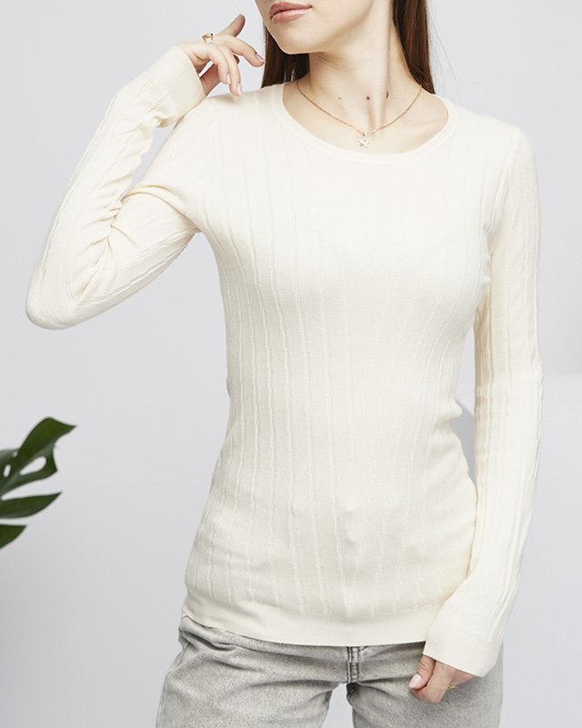 - Egyedi női pulóver kellemes, puha anyagból. A termék hosszú ujjú, kerek nyakkivágással és csíkokkal díszített. Tökéletes alkalmi ruhák készítéséhez! MEGJEGYZÉS: A mérési pontosság (+/-) 1 cm.