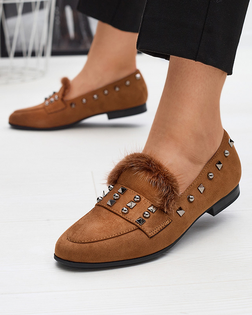 Női teve naplopók strasszokkal és szőrmével Nerrov- Cipők