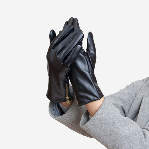 Fekete női öko-bőr kesztyű dekoratív cipzárral - kiegészítők