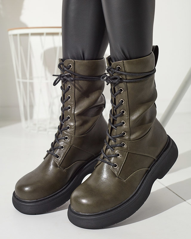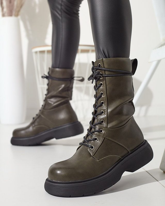 Sötétzöld Ferisis fűzős női magas csizma - Lábbeli