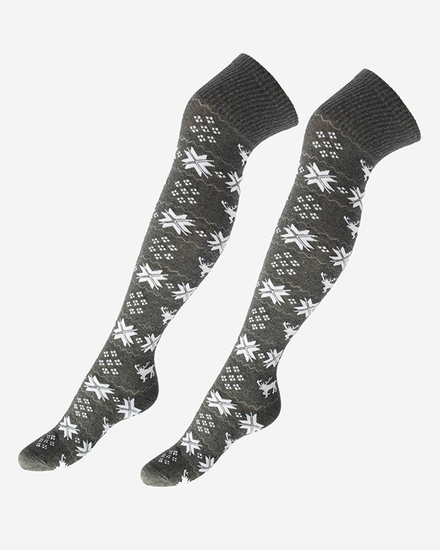 Női karácsonyi térdzokni sötétszürke színben- Fehérnemű