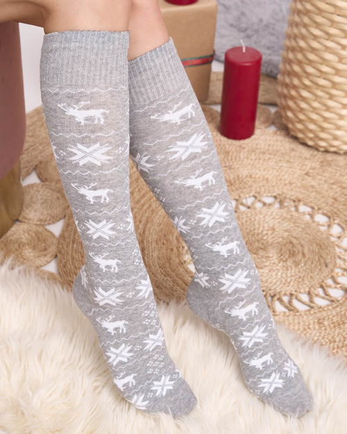 Női világosszürke hosszú karácsonyi zokni - Fehérnemű