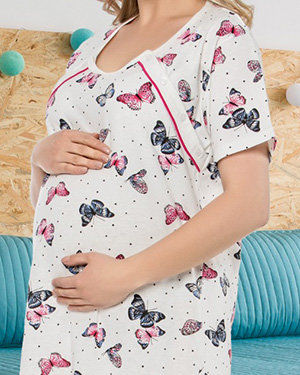 Fehér kismama és szoptatós hálóing pillangókkal - Ruházat