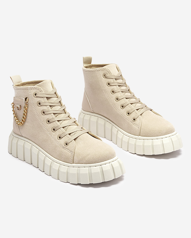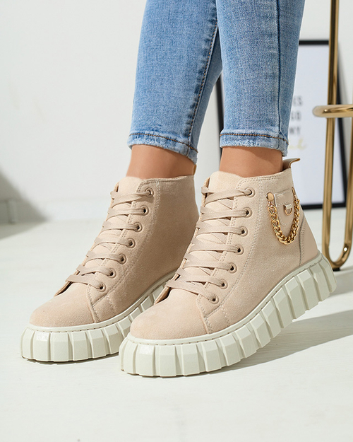 Krémszínű női csipkés sportcsizma díszítéssel Tamti - Lábbeli