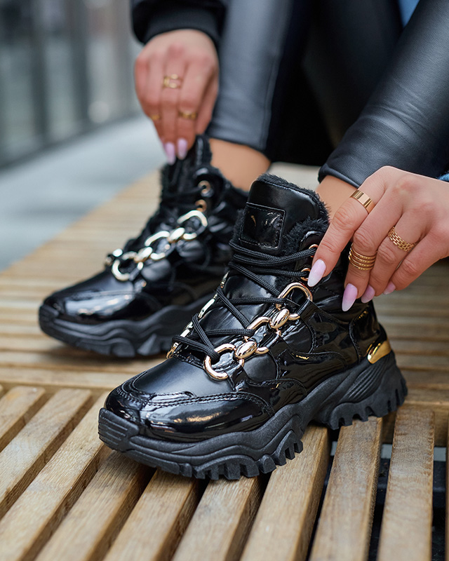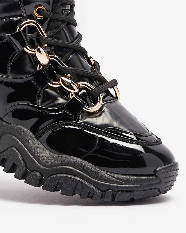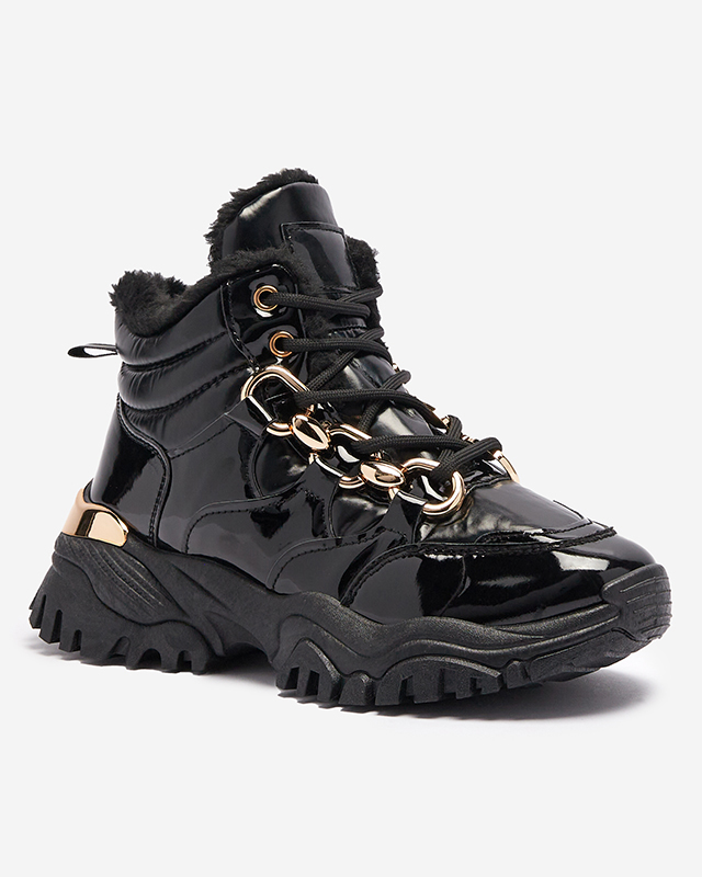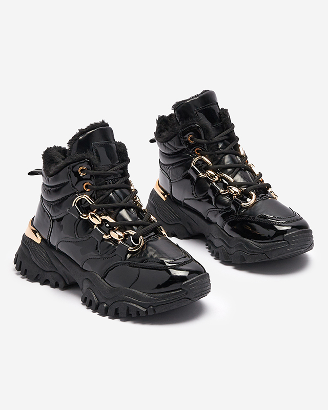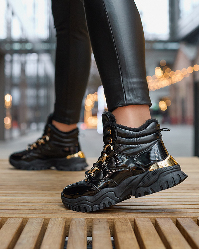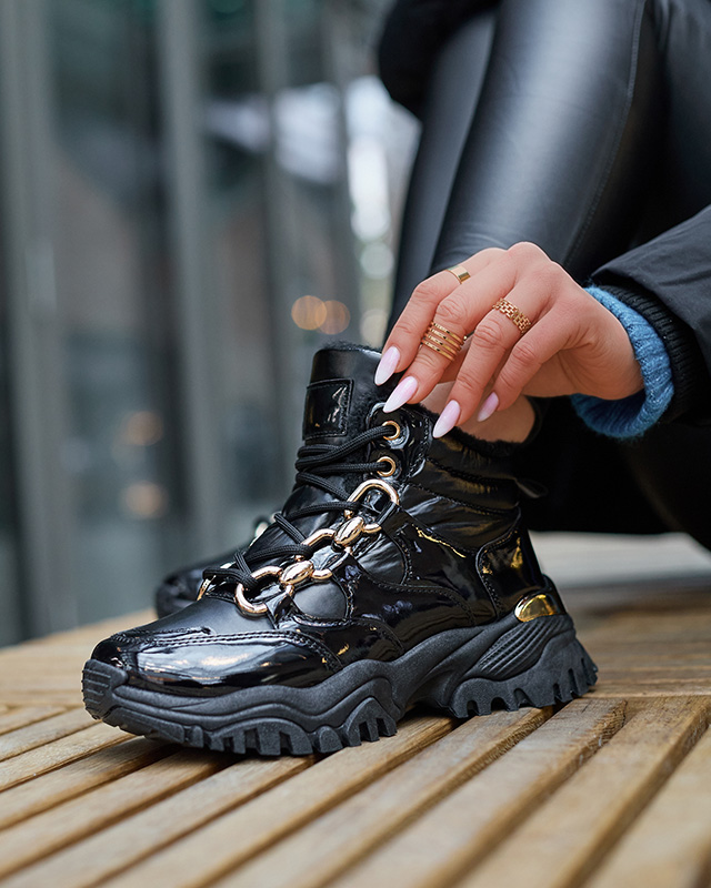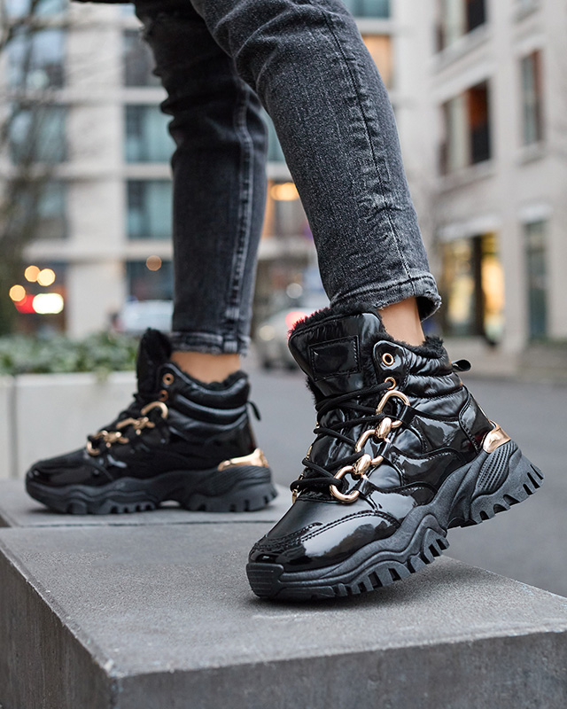 Fekete női sportos téli csizma a'la trappers Mertika - Lábbeli
