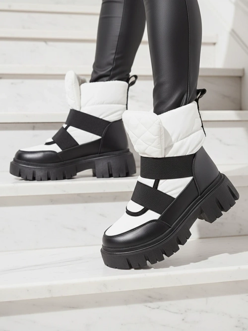 Női hócsizma lapos talppal fekete-fehérben Ferory- Footwear