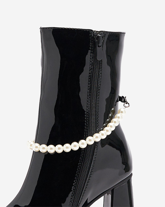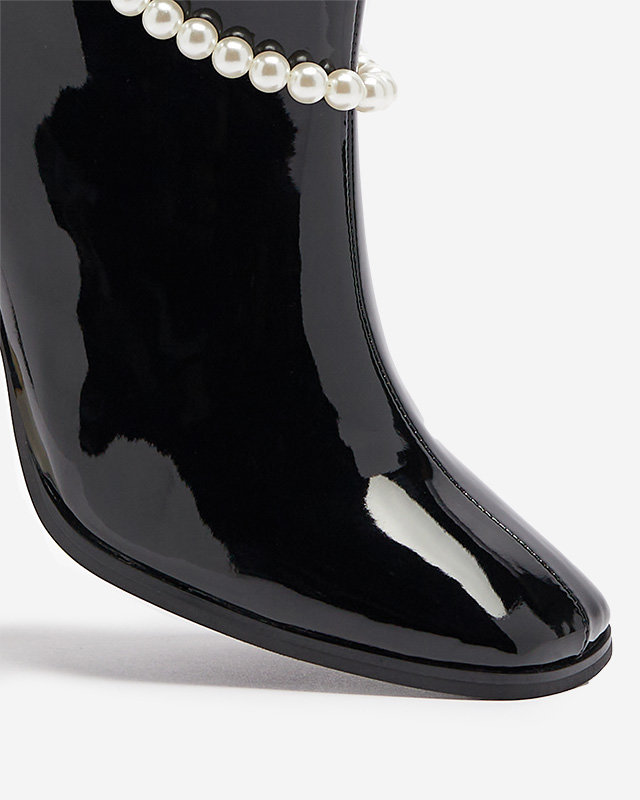 Fekete lakkozott női magas szárú csizma Rassla- Footwear