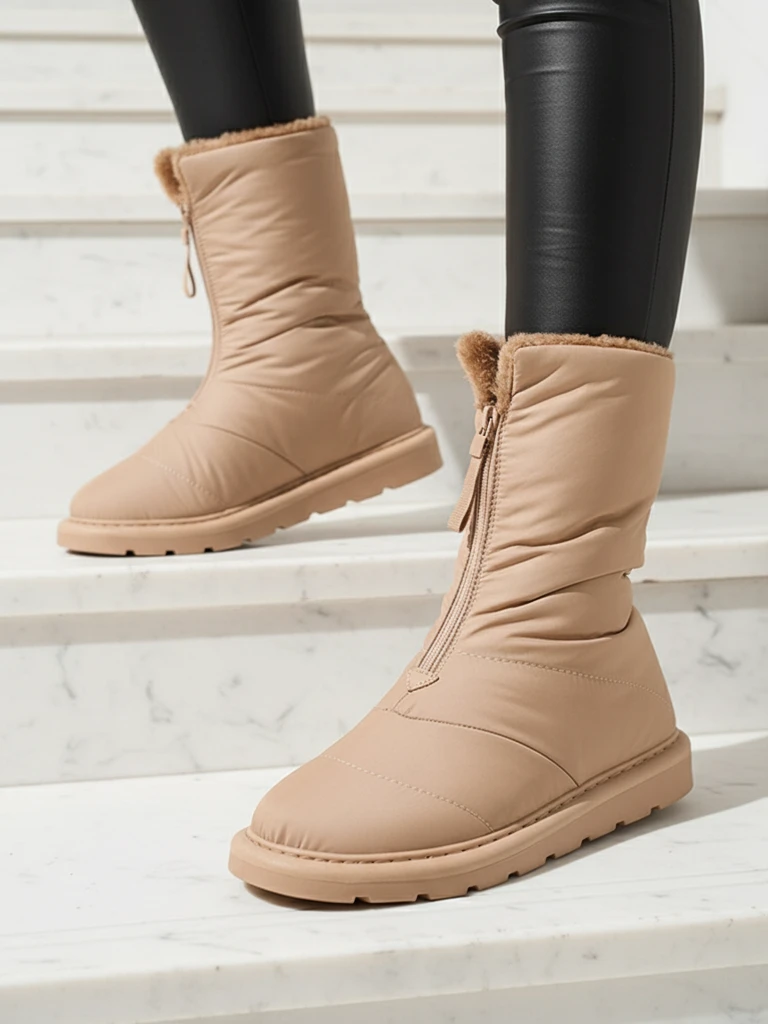 Stílusos női hócsizmák, a felsőrész műanyagból készült, viaszos vászon hatású. A belseje vastag műszőrmével van bélelve, a cipő elöl cipzárral záródik. VILÁGOSBARNA NŐI TÉLI HÓCSIZMA TIRIGGA