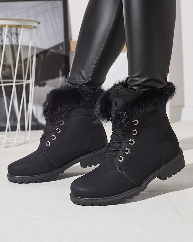 Klasszikus női csizma a'la trapper fekete színben Lausa- Footwear