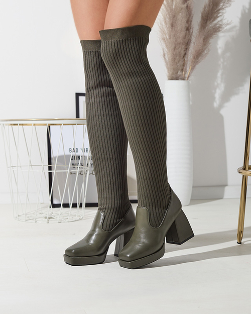 Sötétzöld női térdig érő, csúszós női csizma Sarioga - Lábbeli