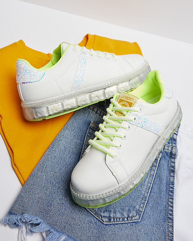 Női sportcipő fehér színben, neonzöld betétekkel Asxa- Footwear