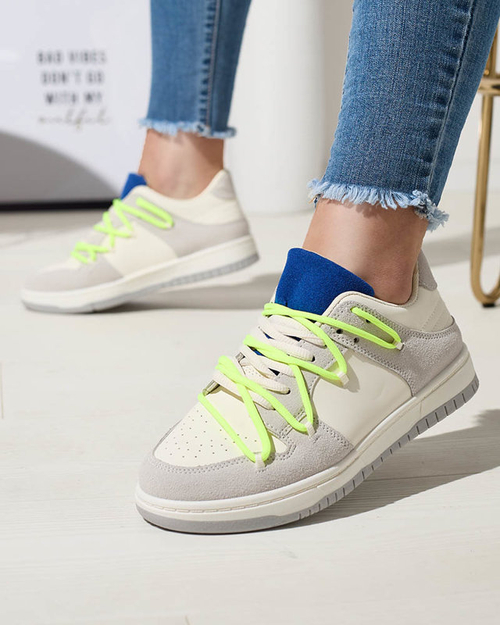 Fehér-szürke női sportcipő neonszínű cipőfűzővel Olierinc - Lábbeli