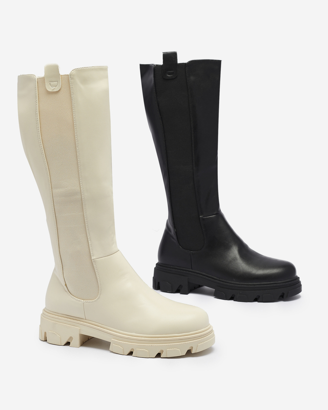 - Klasszikus női alacsony sarkú csizma, ökológiai bőrből. A modell cipzáras, belül nincs melegítés, oldalán rugalmas betét. KRÉMSZÍNŰ NŐI CSIZMA CSIZMA SZIGETELETLEN VEBISSA